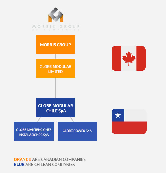 Globe Modular, constituida en agosto de 2012, pertenece al círculo de empresas canadienses de Morris Group (Sudbury) INC, Ontario, Canadá. Al formar parte de una red internacional, la empresa Globe Modular Chile SpA tiene acceso a las mejores prácticas y estándares de calidad, permitiéndole elevar sus procesos y productos a niveles óptimos.